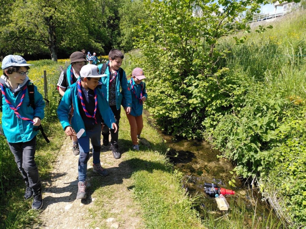 Après avoir fabriqué leur bateau lors de la dernière séance, ce samedi les louveteaux ont fait la course ! Pour ce faire, nous avons marché de Croy-Romainmotier à la Sarraz suivant le cours du Nozon sur laquelle les bateaux ont pu s’affronter !